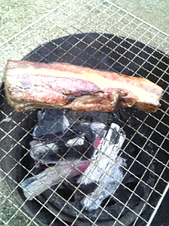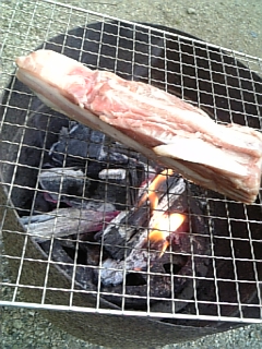 脂が炭に垂れて