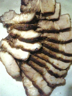 焼豚を切る。